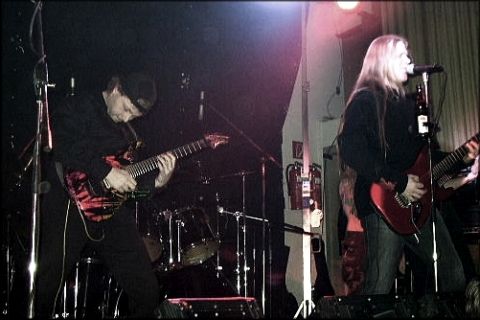 | DREAMING ließen von 20.40 bis 21.25 die Zeit still stehen. Ursprünglich sollten an dieser Stelle Subversion erscheinen, doch die hatten mit Dreaming die Position getauscht. Dreaming zählen zu den Aposteln im deutschen Doom. Ihre Heimat Zschopau liegt im isolierten, dunklen Erzgebirge. Was auch immer die Troika um Sandro Uhlmann, Thomas Schulz und Thomas Becker anpackt: es strotz vor Charisma. Die Musik von Dreaming ist spartanisch, verdammt heftig, emotional und hat einen speziellen, leicht morbiden Beigeschmack. Manchmal schimmern auch Parallelen zu Saint Vitus durch. Aber Dreaming haben ihren eigenen Kopf. Sie haben zwei gute Vokalisten in den Reihen. Etatmäßiger Frontmann ist der agile Uhlmann, doch auch Schulz kauzt ins Mikro. Meine Landsmänner starteten mit einem dunklen Verzweiflungsschrei - der „Homage to an Empty Young Man“. Schwarze und weiße Strahler zauberten stimmungsvolle Effekte, und die Verstärker glühten nun endlich. Weiter ging es mit der Feuerwalze „Treadmill“ und der Neunummer „New Bernd“. Das Zusammenspiel funktionierte ganz prächtig. Pink Floyds psychedelische „Mother Mathilda“ hievte vorübergehend in alte Zeiten. Dazu kam das immer wieder eingestreute Markenzeichen: plötzliche urweltliche Schreie. Das sehnsüchtig-spirituelle „Hello“ schloß sich an, Thomas besang den „Way Home“, und schließlich folgte der Kniefall vor den Göttern durch Vitus´ „Shooting Gallery“. Noch eine Anhimmelung gefällig? Dreaming rissen „Born too late“ an, ließen aber dieses eine Riff so stehen, und gingen ins finstere „By a Hairs Breadth“ über. Die Jungen präsentierten noch den treibenden Doomrocker „Blurred Truth“ und Sandro verriet mir, daß im Sommer ein neues Langeisen erscheint. Dreamings Werke 'Smirten Prøben' und 'Tý Vølý' waren lange unzertrennlich mit meiner Anlage verrostet. Heute sah ich die Helden erstmals in Aktion. Und sie waren noch großartiger als erhofft. - - Ich stürzte das erste Bier - süffiges „Franken-Bräu“ für zwei Euronen. | ||||||||||||||||||||||||||||||||||||||||||||||||||||||||||||