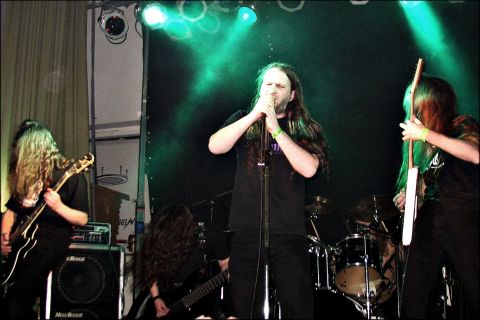 WYTCHCRAFT ließen von 16.50 bis 17.20 die Zeit (fast) still stehen. Ein Fünfer sollte genug Wucht haben, die Halle zum Wackeln zu bringen. Zumal wenn auf dem Haupt des Fronters ein Wikingerhelm thront... Wytchcraft waren junge Kerle mit noch wenig Charisma, „Grenzgänger“ aus dem Ruhrgebiet, die aus ihrer Liebe zu Candlemass kein Geheimnis machten. Der Auftakt „Questions“ zeigte es. Aber Candlemass sind unberührbar. Lied Nummer zwei, das keltisch gespickte „From Dusk Till Doom“, schlug eine progressive Richtung ein. Der Vokalist trug ein Shirt von Entombed zur Schau. Und grimmig, wild headbangend und harsch grunzend wie Vorbild „LG“ trug er auch „To Die in the Arms of Winter“ vor. Die Gitarren liefen feinfühlig, sie liefen schnell und hätten mehr Raum und Kraft vertragen. Zugleich hätte der Bass einfach nur wummern und donnern sollen. An einer lausigen Beschallung lag das heute nicht. Die konsequent durchgezogenen Hymnen „The Circle of Life“ und „Under the Surface“ waren gute Ansätze. Nicht mehr. Wytchcraft wirkten ein wenig wie Suchende. Wie Grenzgänger eben. Sie lieben die opulenten, epischen Melodien. Aber vielleicht sollten sie mehr ihre Herzen sprechen lassen. Daß es die Wytchis knacken lassen können, bewies die Anvil-Anhimmelung „Forget in Fire“. Dazumal zwar noch nicht auf Erden, bedeutete sie final einen Lichtblick. Keep on dooming, Wytchcraft! | ||||||||||||||||||||||||||||||||||||||||||||||||||||||||||||