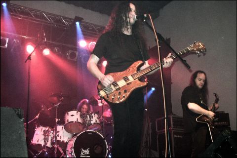 Auf die Angelsachsen THE RIVER war ich gespannt. Aber so was von! Einerseits sind The River eine der im Doom raren Gruppen mit einem Weib in den Reihen. Andererseits scharrte ihr Einstand 'Oneiric Dirges in Mono' heftig am Tor zur Genialität. Auf ebenjenem geben sich The River wie ein typischer Novembertag: trist, traurig, grau - und doch so unglaublich reinigend und befreiend. Das englische „bleak“ trifft es noch am ehesten. Doch ausgerechnet das Oneiric´sche Überlied „Opaque“ fehlte heute. Inzwischen haben Vicky, Steve, Chris und Ex-Unsilence-Trommler Jonathan ein weiteres - für mein Empfinden nicht übermäßig originelles - Demo produziert. Die Kreuzung aus Doom, Drone und Sludge ist einem Mahlstrom aus summenden Tiefsequenzen gewichen. Werksgetreu zur Platte glich ein Stück sehr dem anderen. Dazu kam die anfangs stocksteife Performanz der kleinen Frontfrau Vicky, deren träumerische Stimme mir so holterdiepolter den Kopf verdreht hatte (und das, wo ich kein Freund von weiblichem Gesang bin). „Amber“ brachte etwas Leben in die langmähnige Gruppe aus Britannien. Doch im Endeffekt waren The River ein wenig wie ein Schwarm sommerträger Hornissen mit einer Königin auf Valium, wie ein bittersüßes Wiegenlied am Abend - ein Schlag ins Wasser. Beim Umbau schneite aus den Wäldern des Erzgebirges der Mann in altroter Denim-Jacke und mit 'V'-Aufnäher herein: traditionell dicht wie eine Haubitze - und am Ende doch alle überlebend... Ferner berichtete mir „Wargods of Metal“-Schreiber Chris von seinem Chef, der mit großem Interesse meine Marathonberichte verfolgt... | ||||||||||||||||||||||||||||||||||||||||||||||||||||||||||||