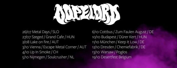 Je später der Abend, desto doomiger die Gäste! DOPELORD waren gleich mehrfach völlig aus der Art geschlagen. Sie sahen aus wie Doom, sie machten Doom, waren gefühlt eine Nummer zu groß für die „Chemo“, sie trugen den Ruhm des Headliners, und zugleich das Kreuz eines späten Starts. Fünf Stunden mußten Miodek, Mroku, Klusek und Ochocinski der Dinge harren, bis Mitternacht endlich ihre Stunde schlug. Einerseits wurden Dopelord von zahllosen Doombesessenen regelrecht durch ihren Auftritt getragen (ich wußte gar nicht, daß Dresden so viele davon hat, sie waren alle aus ihren Löchern gekrochen, der halbe Saal glich einem Meer aus wirbelnden Mähnen), andererseits kämpften die Polen gegen Randalierer, die zum Hauptakt in den Saal drangen, um Jacken und Rucksäcke auf die Bühne und Bodenpedale zu drapieren - was den ansonsten stillen und würdevollen Frontmann Miodek ein böses Runzeln auf die Stirn trieb. Danach mußten die neuen Klub-Maskottchen dran glauben: Die Flamingos wurden erst gewürgt, und dann als Crowdsurfer durch den Saal bugsiert. Dopelord waren von diesen Chaoten ziemlich angepisst, und werteten die Nacht am Ende süffisant als „THE CURSE OF FLAMINGO“. Davor lag eine weitgehend magische Stunde, die mit den derzeit phantastischsten Stonerwalzen überhaupt - „Children of the Haze“ und „Dead Inside“ - begann, und mit den treibenden Hymnen „Magick Holocaust“, „Reptile Sun“ und „Preacher Electrick“ endete. Der Mittelteil fiel deutlich schneller aus, als der Suchtstoff zu Beginn versprach, mitunter fast ein bißchen crustig, und er wurde zu völlig unangepaßtem Gehüpfe, Springteufeleien und Moshkreisen mißbraucht. Zwei Wässerchen aus Rußland, die schier unerschütterliche Ruhe der Protagonisten, und die letzten Lieder im Schneckentempo entschädigten aber für alles. Die Stunde mit Dopelord verging wie im Flug und nach den finalen Slowbangern hatte ich eigentlich noch gar keine Lust zu gehen. Goddess of Doom Peanut auch nicht. Dziekuje, Dopelord! Heiliger Vitus, 16. Oktober 2019, Bilder: Peanut & Vitus | ||||||||||||||||||||||||||||||||||||||||||||||||||||||||||||