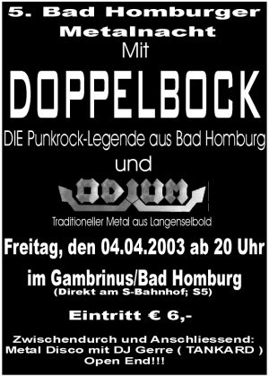 DOPPELBOCK, ODIUM D-Bad Homburg vor der Höhe, Musik Club Gambrinus - 4. April 2003 | ||||||||||||||||||||||||||||||||||||||||||||||||||||||||||||