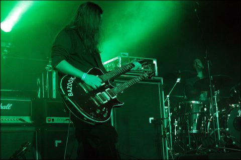 | Nach dem Ausstieg von Bassist Jason McCash bei The Gates of Slumber, der zugleich das Ende der Gates bedeutete... worauf McCash an einer Überdosis starb, grummelt es wieder im Untergrund von Indianapolis. Chuck Brown, Ex-Trommler bei den Gates und deren Vorläufer The Keep, hatte anno 2004 APOSTLE OF SOLITUDE gegründet, um bei denen fortan als Sechssaiter und Vokalist an der Front zu stehen. Komplettiert wurden die Apostel durch Sechssaiter und Co-Vokalist Steve Janiak, Viersaiter Mike Naish und Trommler Corey Webb: vier bärtige, tätowierte und langaarige Schwergewichte vorm Allmächtigen, der Frontmann zudem in einem ausgefallenen Nick-Cave-Shirt. Nachdem ihnen zu Beginn die Technik das Leben schwermachte, kam das Kommando aus USA in geradezu Furcht auslösender Art ins Rollen. Während es in Würzburg dunkelte, zelebrierten Apostle of Solitude Doom Metal - traditionellen; ruhig, kraftvoll und aufwühlend wie die Gates, nur noch eindringlicher, endgültiger und von massiven Trossen und einer alles durchdringenden, glockenreinen Singstimme getragen. Darin wurden Schmerz, Einsamkeit, Sorgen und Qual verarbeitet. Jedes einzelne Lied glich einer Offenbarung. Und eins stach noch heraus: der von den Gitarristen zusammen gesungene, ultraschwere Viertelstünder „Sincerest Misery (1000 Days)“- welcher in meinen Augen auch zum gewaltigsten Doomteil des elften Hammer aufstieg. Was fast zu erahnen war: Nach Apostle of Solitude war das Festival gelaufen! | ||||||||||||||||||||||||||||||||||||||||||||||||||||||||||||