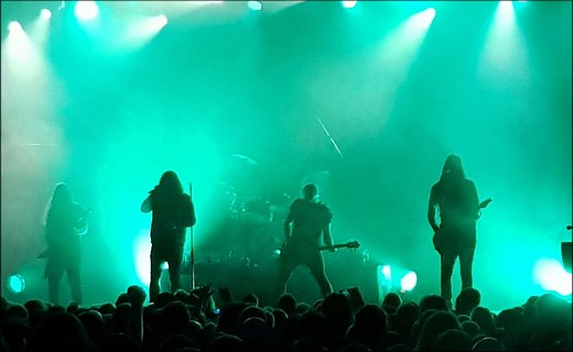 | Mit ihren geschmackvollen Klamotten hatten SÓLSTAFIR in puncto Fanartikel die Nase klar vorn. Wäre ich Anhänger von Sólstafir, hätte ich 55 Euro für eine Kapuzenjacke springen lassen. Aber die Isländer waren mir von ihrem Auftritt 2017 in Dresden in keiner guten Erinnerung. Im Grunde hatte sich nichts geändert. Vor uns thronten vier bärtige Männer in Schwarz: zentral der Gruppengründer Aðalbjörn Tryggvason als einziges Urmitglied. Flankiert wurde er von Sæþór Sæþórsson und Svavar Austman, die mit ihren Hüten, Sonnenbrillen und langen Bärten wie Ebenbilder von ZZ Top wirkten. An den Trommeln saß immer noch Hallgrímur Hallgrímsson. Mit eintausendfünfhundert Menschen war die Batschkapp ausverkauft und bei Sólstafir herrschte das größte Gedränge. Vor der Bühne quetschten sich auf engstem Raum Menschen wie Sardinen, sodaß der Saalschutz den Bereich absperrrte. Man möchte sich nicht ausmalen, hätten wie im Bataclan Bewaffnete die Halle gestürmt... Zur unchristlich frühen Stunde von 20 Uhr starteten die „Antichristian Icelandic Heathen Bastards“ in ihre Schau. Derweil die Bühne wie in einem Spiel zwischer Feuer und Eis fortlaufend ihre Farbe von tiefem Blau über episches Weiß und flammendes Rot zu geheimnisvollem Lila wechselte, rieselte in den nachfolgenden achtzig Minuten ascheweicher Pop durch den Äther, der noch milder war als der Postrock vor sechs Jahren. Nur das semiaggressive „Melrakkablús“ und das noch ältere „Bloodsoaked Velvet“ weckten Erinnerungen an Zeiten als Sólstafir Black- und Viking Metal huldigten. Die unsagbar seichten Pseudozugaben wurden durch die Vorstellung der Musikanten in groteskem Englisch auf eine Viertelstunde gestreckt. Good night, ladys and gentlemen! | ||||||||||||||||||||||||||||||||||||||||||||||||||||||||||||
