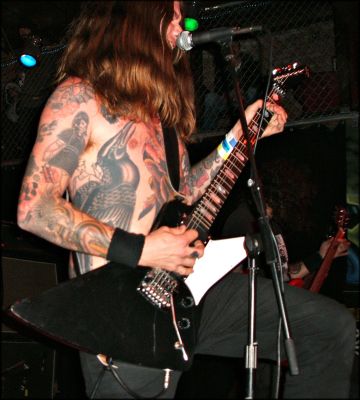 | Die Nächsten waren ein bißchen geschwinder drauf. Die New Wave of British Heavy Metal traf den Stoner Metal des neuen Jahrtausends. Das in etwa ließe sich von den SAVIOURS erzählen. Die vier Langhaarigen aus dem kalifornischen Oakland wühlten in den Venen des achtziger Speed und Thrash und fügten dem schnellen Stil einen dunklen Schimmer hinzu. Besonders der junge Frontmann Austin Barber ragte dabei mit einer ungeheuren Energie und Lebendigkeit heraus. Zu ihren raserischen, melodischen Stahltrossen lehnten die Gitarristen oft oldschoolig wie in den glorreichen Metalachtzigern Rücken an Rücken gelehnt. Und mit ihren Songs um die „Acid Hand“ hatten die Metalheads vom fernen Pazifik auch den ersten Moshpit der Nacht ausgelöst - welcher jedoch rasch vom Saalschutz unterbunden wurde (Jawoll, in USA herrscht noch Zucht und Ordnung!). Wie bei den Spähtrupps war auch der Auftritt der vier aus dem Golden Staat von extrem kurzer Dauer, nämlich einer halben Stunde. Nur vier Tage später sollten sich die Burschen mit Saint Vitus in einigen Klubs an der Ostküste der USA zeigen. Und so kam es... | ||||||||||||||||||||||||||||||||||||||||||||||||||||||||||||