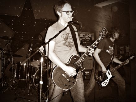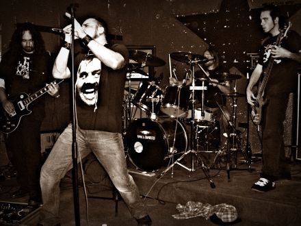 | Mit „Lizard On A Cold Black Stone“ und 37 Minuten Verzug leiteten OMEGA SOUL aus Nürnberg um 21 Uhr 07 den LFA ein. Schon zuvor war mir ein Typ mit schwarzer Melone und Jack-Nicholson-Shirt aufgefallen, der in seiner Aufmachung wie eine Kreuzung aus „Uhrwerk Orange“ und „Shining“ aussah. Es sollte sich dabei um einen gewissen Herrn Herr handeln, der laut Veranstalter Boris einer derer ist, der alle sieben Austragungen des LFA mit erlebte (neben dem Omega-Bassisten und Trommler, einer Rothaarigen mit lauter Stimme, sowie Peanut und mir). Herr, Dörfler, Kröner und Kraus waren als Proberaumkumpel von Boris eingeladen und boten einen Stil, der nur am Rande etwas mit Doom gemeinsam hatte. Omega Soul verquickten stampfende Rhythmen und verquaste Hetfield-Vokale zu einer Art Southern Rock, dem jeder Verve abging. 'The Last Man On Earth' heißt das Album der Lokalmatadoren. Und ein Lied das mit einem langen Gitarrensolo begann, und im zweiten Teil „The Untold Song“ betitelt war, beendete lange 53 Minuten. | ||||||||||||||||||||||||||||||||||||||||||||||||||||||||||||