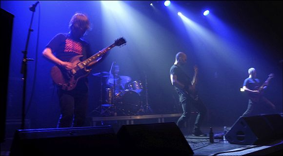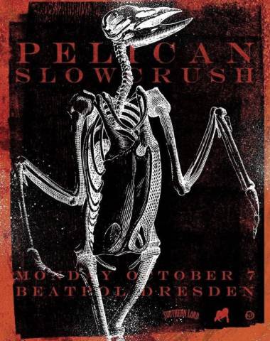 | Eine Vergangenheit mit fünf Studio- und zig Minalben, der Ruf als Vorreiter des Sludge Metal noch unter dem Namen „Tusk“, der Ausstieg des Gründungsgitarristen Schoeder-Lebec, ein Freund aus alten Tagen und der Vater des neuen Gitarristen, die zu früh starben, Jahre der Funkstille: Die Chronik der von Chicago nach Los Angeles (zu „Southern Lord“) übergelaufenen Instrumental-Postcoreler PELICAN war voller Ruhm und Tragik. Pelican hatte ich mit meinem Mädel in einer magischen Nacht 2008 im „Bowery Ballroom“ in New York erlebt. Zu der Zeit waren Pelican auch im Beatpol zu Gast (der damals noch „Starclub“ hieß). Gitarrist de Brauw erinnerte sich mit den Worten „It´s a wonder“ daran... nur niemand im Publikum... Nach sechs Jahren Studiopause präsentierten de Brauw, Thomas und die Brüder Herweg mit 'Nighttime Stories' eine neue Schallrille, und zwar in voller Länge. Angesichts der Vorgeschichte war der Titel gewissermaßen Programm - hielt aber nicht, was er versprach. Wie bei Slow Crush versickerten die Umrisse der Akteure im Nebel. Doom suchte ich vergebens. Die neuen Töne schwebten atmosphärisch verhuscht um die roten Säulen im einstigen „Filmeck Briesnitz“. Es fehlte an Tiefe und Seele. In den erstaunlich harschen Gitarren und dem lässigen Gehabe von de Brauw (der einzige Akteur mit längeren Haaren heute abend), hatte die Schau so seine stärksten Momente. Das Tempo wurde hinten raus immer weiter erhöht, der Grundton immer metallischer. Am Ende stand ein akzeptables Stündchen Postcore. Einzig die Spitze gegen´s Reizthema - „We have different cultures here, thank you for joining us“ - störte. Ausgerechnet am Nationalfeiertag der untergegangenen DDR, dem fünfzigsten!... Aber das wußten die Amis nicht. Auf den Kauf einer Platte oder eines Shirts (bei dem das C in Pelican zum Halbmond gedreht war), habe ich allerdings verzichtet. | ||||||||||||||||||||||||||||||||||||||||||||||||||||||||||||