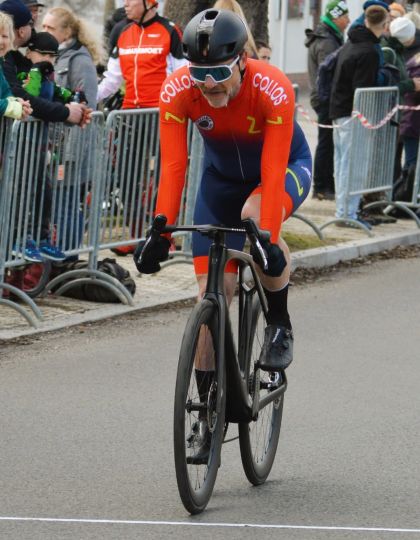 Epilog Direkt nach mir gingen die Mannschaftskameraden Kunath und Benedix in ihr Rennen, dem ungleich schweren, da gemeinsamen der Mastersklassen 2 und 3. 37 Akteure hatten hier gemeldet, darunter Granaten vom Ur-Krostizer-Nachfolgeteam Marx Städter-Bikescheune sowie Bauauf-Lawi. Jens landete auf der 18. Stelle und äußerte augenzwinkernd „Ich lege keinen Einspruch ein.“ Robert gab drei Runden vorm Ende entkräftet auf. Beide hatten sich auf einem Rollentrainer warmgefahren, jedoch viel zu kurz. Unser Amateur Heidner mußte endlos lange auf seinen Start um 16 Uhr warten. Er hatte die Startnummer 13 gezogen, und dem Aberglauben und den Regeln des Radsports folgend, verkehrt herum auf dem Trikot befestigt. Dafür wurde er nach der Zielankunft auf Platz 30 vom Wettkampfausschuß verwarnt. Eine angenehme Plauderei entwickelte sich mit dem frisch in meine Altersklasse aufgestiegenen Leipziger Bethke. Was ich bislang nicht wußte: René ist Chef der renommierten Renngemeinschaft LE Masters. Nach einem langen Tag, der halb acht in der Frühe begann und um sieben abends im Halbdunkel endete, musste ich den mit meiner Frau angepeilten Konzertbesuch bei den Stoner- und Progrockern Orange Utan und Space Pilgrim im Zentralwerk Dresden streichen. Vitus, 31. März 2026, Bilder: Reinhard Rohrmann | ||||||||||||||||||||||||||||||||||||||||||||||||||||||||||||