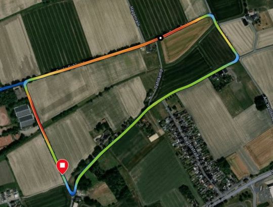| Die zwischen Werne und Stockum gelegene, von Feldern, der Autobahn 1 und dem Fluß Lippe eingerahmte Rennstrecke, führte über die Wirtschaftswege An der Wiebecke, Burbankstraße, Schwartekamp, Fährenkampweg, Hagenrain und Grote Dahlweg - allesamt drei Meter schmal und völlig flach. Je nach Rennklasse variierte das zu absolvierende 2,7 Kilometer lange Rechteck, so daß sich Distanzen zwischen 11 Kilometer bei den Schülern und 68 Kilometer im Rennen der Elite ergaben. Ackerland ist dem Wind preisgegeben. Wird er blasen? Weht er stark, kann das zu Windkanten führen und das Feld auseinanderreißen. Bleibt es ruhig, sind die Sprinter in ihrem Element. | ||||||||||||||||||||||||||||||||||||||||||||||||||||||||||||