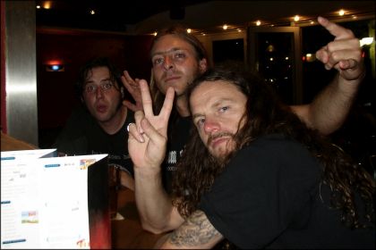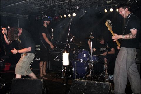| Halb zehn tauchten wir ein in die Welt der Magie. Berlins Doom-Quadriga SHEPHERD eröffnete sie. Vor einem halben Jahr hatte ich mit einem gewissen „Kanzler“ in Sachen Hellhound-Backstocks zu tun. Erstmals in echt sah ich den Mann bei besagter Vitus-Audienz auf dem WFF. Ihre Namen hielten Shepherd auf ihrem Album 'Laments' unter Verschluß: „Shepherd is: guitars, bass, drums and vocals.“ Heute lüftete sich das lange gehütete Geheimnis: Kanzler Andreas Kohl war Vokalist; dazu kamen Gitarrist Oliver Bojoski, sowie Nico Kozik und Tobias Engel an Bass und Schlagzeug. Wie auf der Platte eröffnete das cathedral-schrille „Healing“ den Reigen. Mit „Wednesday“ folgte eine neue sterbensschöne Walze. Und im Keller herrschten vierzig Grad. Von Koziks Bass tropfte Schweiß, unterdes der Kanzler befand: „Ich glaub´ es ist Zeit, die Klimaanlage einzuschalten!“ Nur weiter voran! Kohl fauchte in Hardcorepositur und der Rest stonerte mich mit dem „Suburban Boogie“ auf eine große Reise bis weit nach Mitternacht. Shepherd gehören zu den besten Doomern im Osten. Die bedrohliche, mit Growl- und Folkpartikeln vollgepumpte „Black Faced Witch“ und ein Malmer namens „Monday“ folgten. Wino verfolgte den Auftritt aufmerksam an vorderster Front. Jenem standen nur 45 Minuten zu. Shepherd schlossen mit dem sludgig beginnenden und im All endenden Dreizehnminüter „The Coldest Day“. Fünf nach zehn boxte der Kanzler den Mikroständer mit lautem Knall vom Geviert, sprang von Selbigem, stürmte durch die Meute und verschwand backstage. Frust? Provokation? Jubel gewiß nicht! Zumindest das abrupte Ende eines einwandfreien und grundehrlichen Auftritts! - - Beim Umbau konnte ich paar Worte mit Kohl wechseln. Die Aktion mit dem Mikro ist ´ne Marotte von ihm und er „fühlte sich einfach nur blutleer“. | ||||||||||||||||||||||||||||||||||||||||||||||||||||||||||||