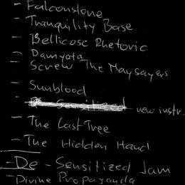 .:: ABSPIELLISTEN ::. SHEPHERD (21.30-22.15) 1. Healing 2. Wednesday 3. Suburban Boogie 4. Black Faced Witch 5. Monday 6. The Coldest Day / The Story of the Holy Drinker THE HIDDEN HAND (22.30-23.40) 1. Falconstone 2. Tranquility Base 3. Bellicose Rhetoric 4. Damyata 5. Screw the Naysayers 6. Sunblood 7. Neues (instrumental) 8. The Last Tree 9. The Hidden Hand ****** 10. De-Sensitized ****** 11. Divine Propaganda | ||||||||||||||||||||||||||||||||||||||||||||||||||||||||||||